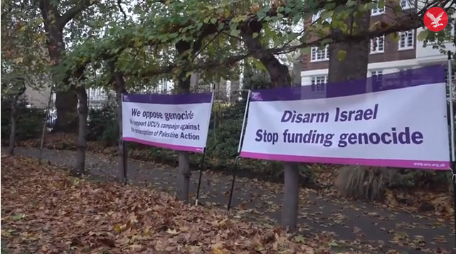 Signs in London showing support for the proscribed group and calling out the Government's complicity