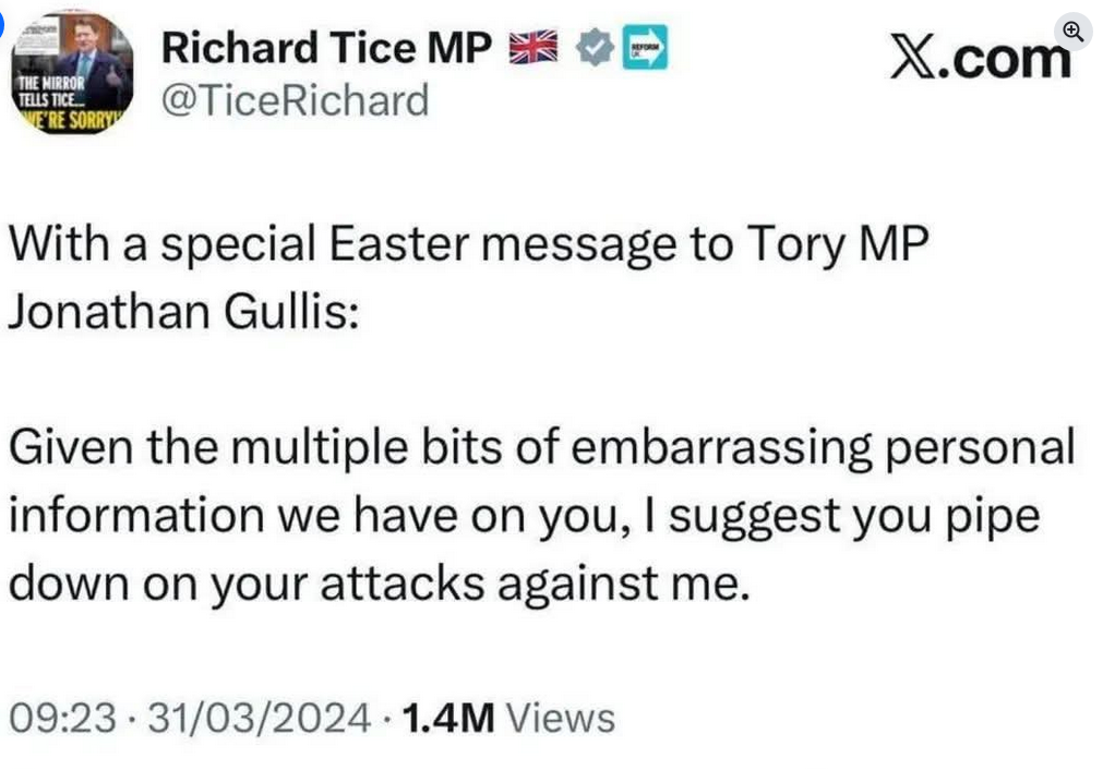 Then along came Jonathan ‘not so much born as curled off’ Gullis. Even in the dying days of Conservative rule, he managed to be a standout specimen: a bottom-of-the-barrel Tory, only narrowly beaten to the title of Biggest Tory Prick by Lee ‘30p Lee’ Anderson. Anderson eventually jumped to Reform UK Ltd too, because of course he did – but Gullis? He’s a whole other level of ringpiece. Anderson is just thick. Gullis is thick and unhinged. A rare and beautiful combination for the political satirist.