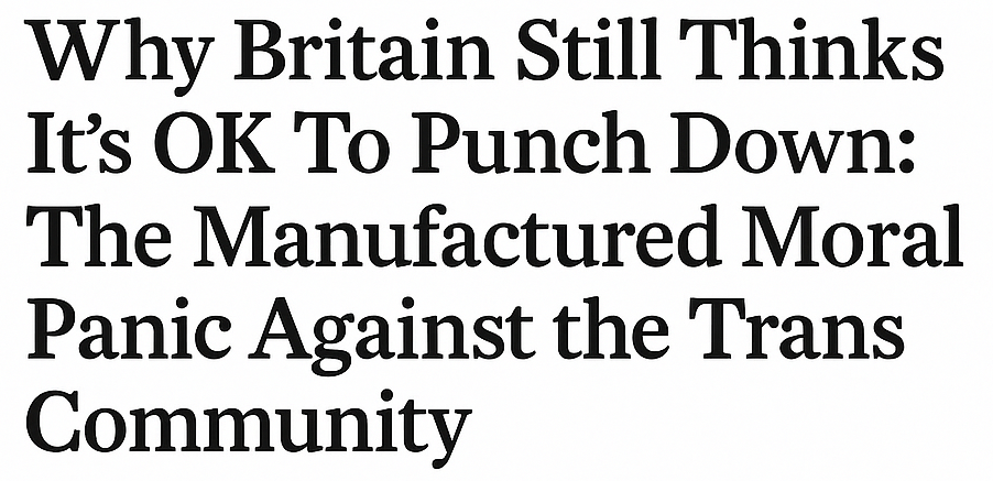 Britain’s persecution of trans people is not a reflection of an informed public demanding action. It is a reflection of a political and media establishment desperate to avoid scrutiny, eager to misdirect public anger, and entirely comfortable punching down when it suits them.